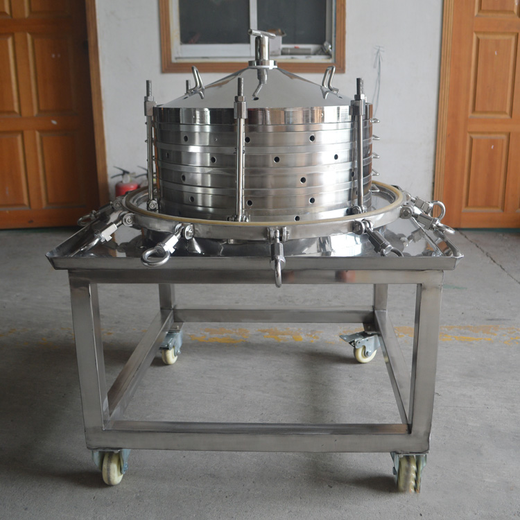 過濾器由多層濾板組成,過濾面積大,流通量大;且可根據(jù)被濾溶液之不同生產(chǎn)工藝(初濾、脫活性碳、除微粒、半精濾、精濾)要求,更換不同濾膜、及根據(jù)用戶生產(chǎn)流量之大小可適當(dāng)減少或增加濾板層數(shù),使之適合生產(chǎn)之需要,因此本機(jī)具有一機(jī)多用適用范圍廣之特點(diǎn);濾板采用平面螺紋網(wǎng)狀形,結(jié)構(gòu),不變形,容易清洗,能有效地增長各種濾膜的使用壽命,從而降低和節(jié)約生產(chǎn)成本,本機(jī)可選配不銹鋼泵,其配用電機(jī)小,耗電省。機(jī)座下裝有膠輪,操作方便,移動靈活,可供移動使用。