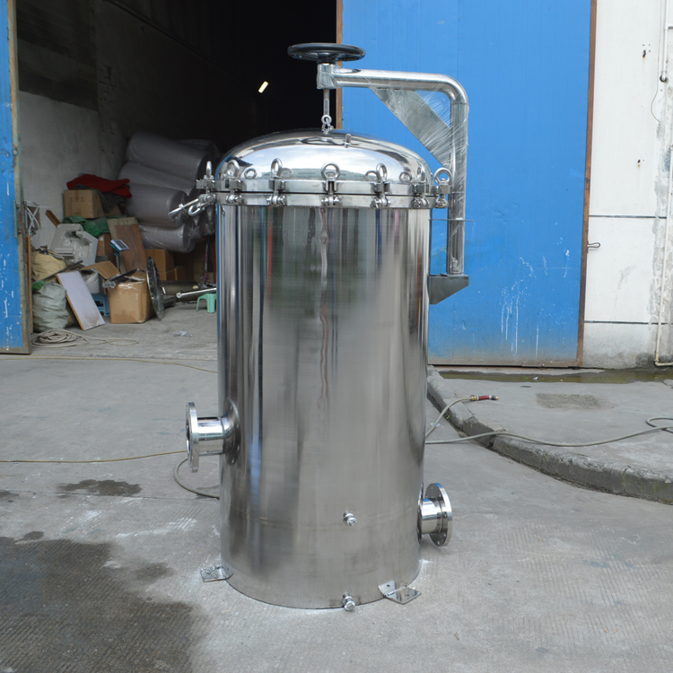 保安過濾器主要由過濾外殼,過濾濾芯等組成,過濾外殼大部分由304不銹鋼材料組成,如用在耐酸堿等特殊場合則可采用316L不銹鋼做外殼??煞譃榉ㄌm式與卡箍式,而法蘭式外殼主要用在過濾流量較大的場合。過濾濾殼中間裝的過濾濾芯主要以PP過濾棉芯為主,有些場合也可選用線繞濾芯或活性炭濾芯。濾芯的安裝數目可從一支到幾十支不等,主要是根據處理量的大小來確定。